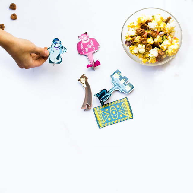 I had bought the obligatory Halloween cereals from Target and found there was a castle on the back of them for the kids to assemble. They kids cut it out and had a blast. They played and thankfully there was three characters, one for each of the boys. Tyson even made a puppet show with the characters. While they played, I made a sweet treat to go along with it, some chocolate covered popcorn with the cereal and sprinkles thrown in it. Here’s one of my favorite recipes tailored from Ashlee Marie Cakes cause baking is one my favorite holiday memories. So here’s a simple Halloween treat for your family.