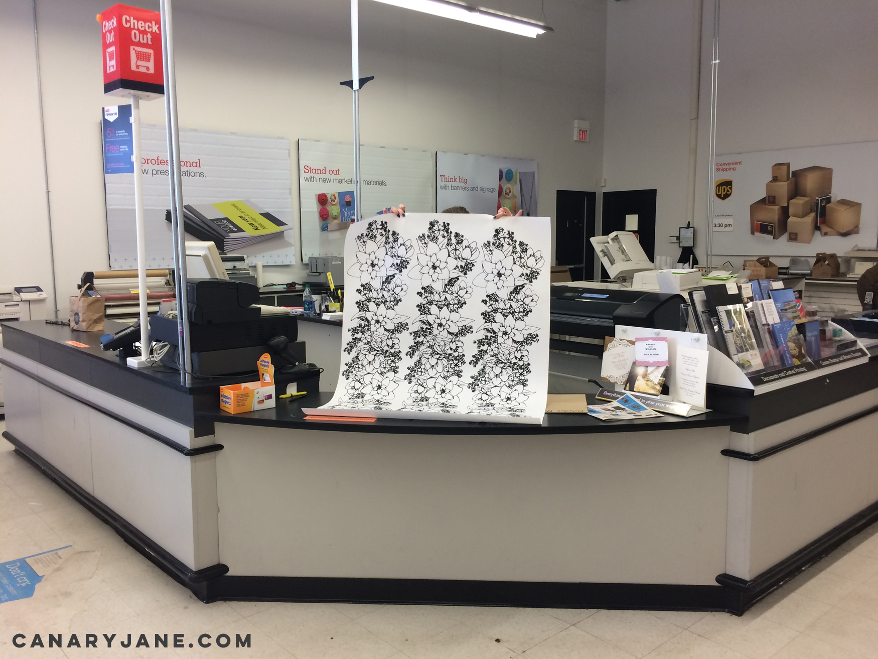 My favorite prints I’ve created are this large stump print found here or my spring table runner. How did I print a table runner for $3. I’d be happy to tell you. In fact I have put together a step by step guide to print large engineer prints. It’s so easy it’s just 4 steps. So let’s get started.