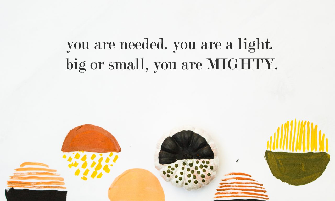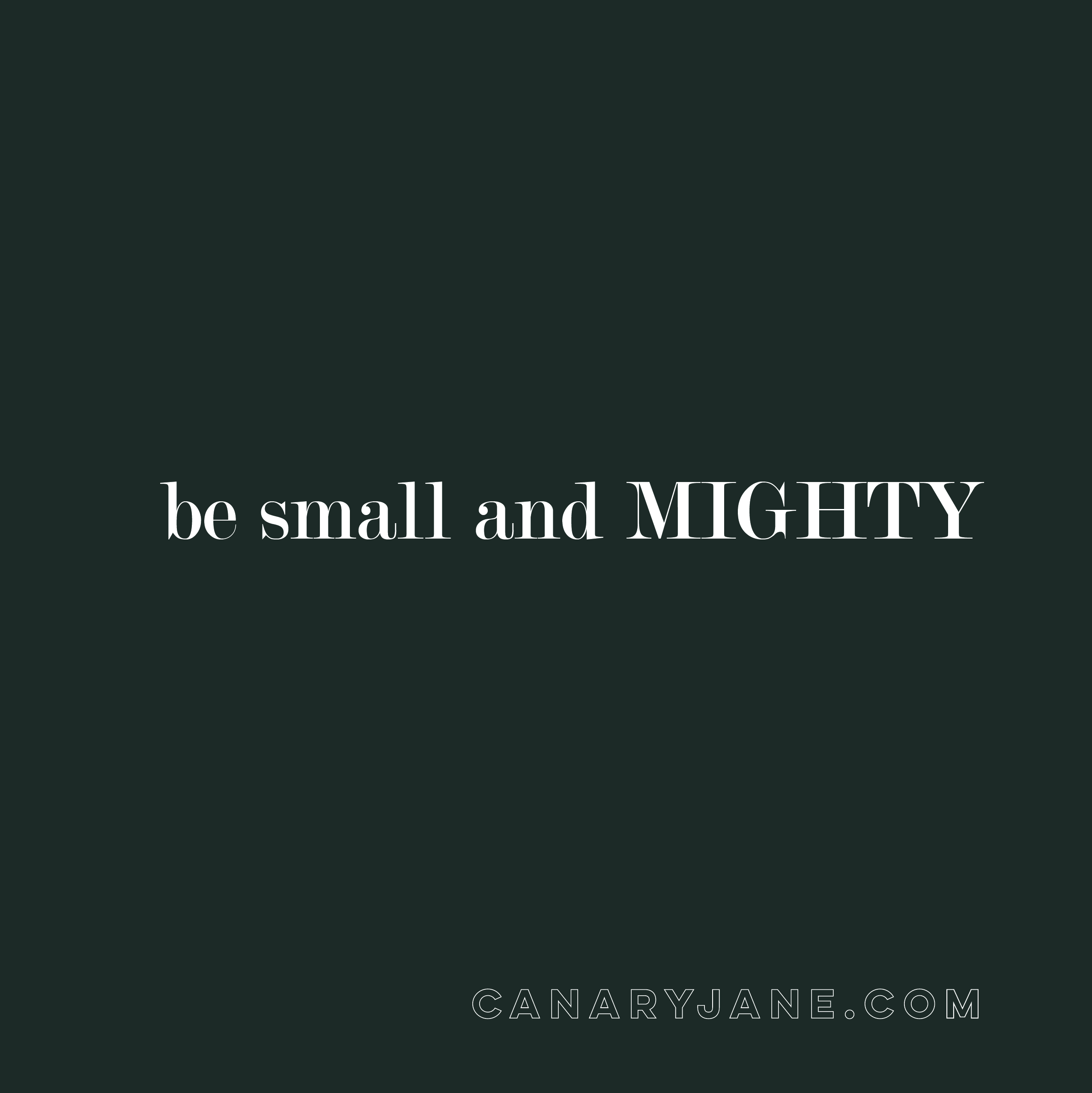 As I have considered these feelings and thoughts I have came to a few conclusions. One being that it is normal and maybe even beneficial to feel small from time to time. And two, that the negative association with feeling “small” is not correct. And I decided I can be small and MIGHTY.
