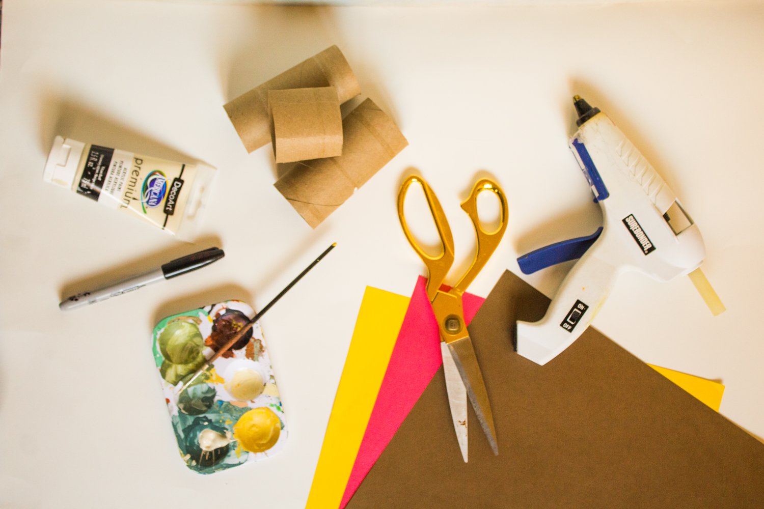 - hot glue gun + glue sticks OR stapler