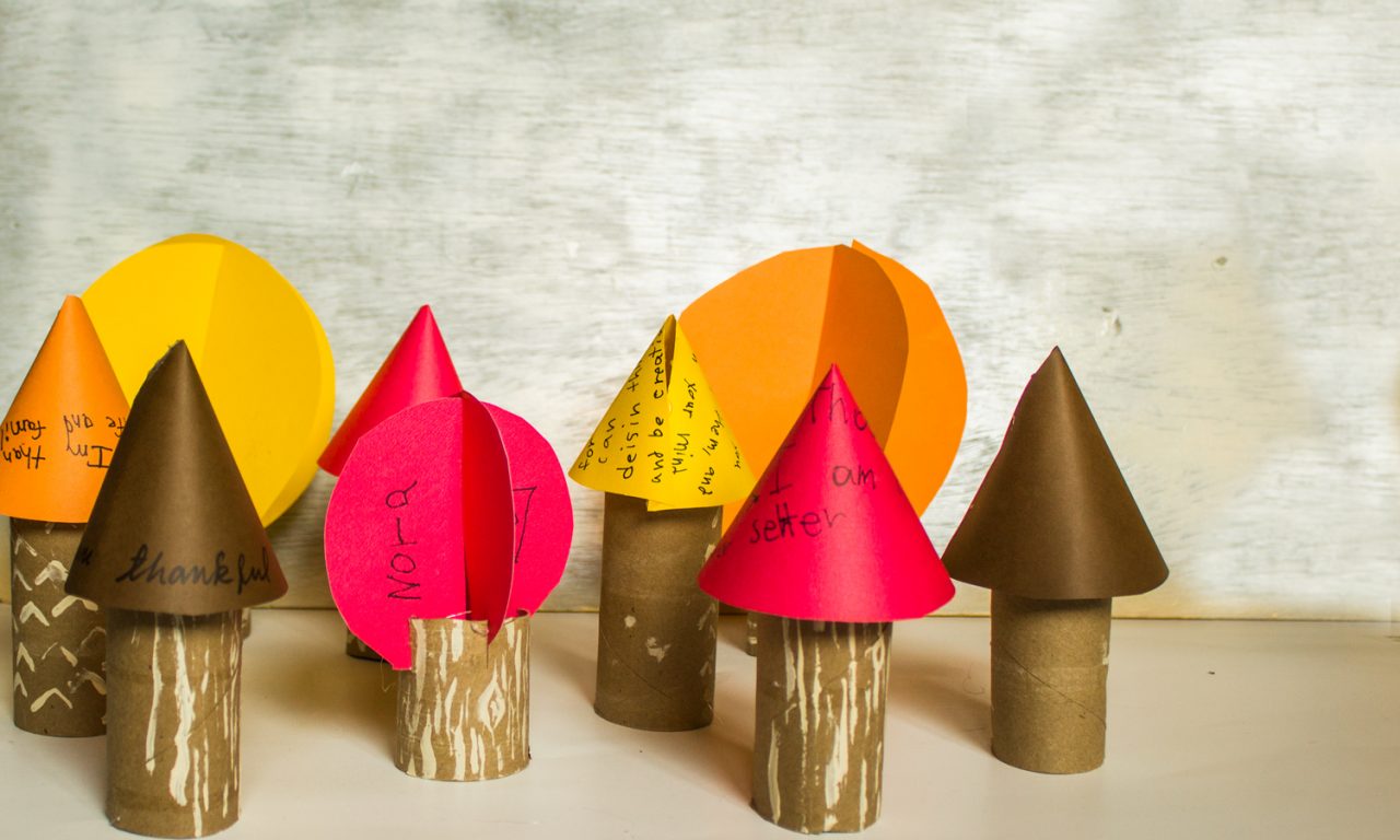 One of my favorite things about fall is the sea of colored leaves in our neighborhood. So why not make our own forest? These trees are super simple to make and are fun for the kids. So you can make the trees or Here is how to make your own forest of thanks, paper thankful trees.