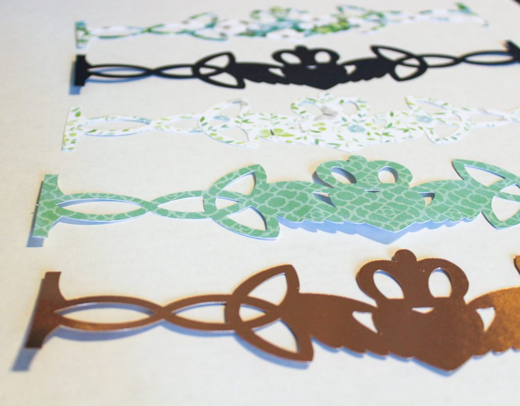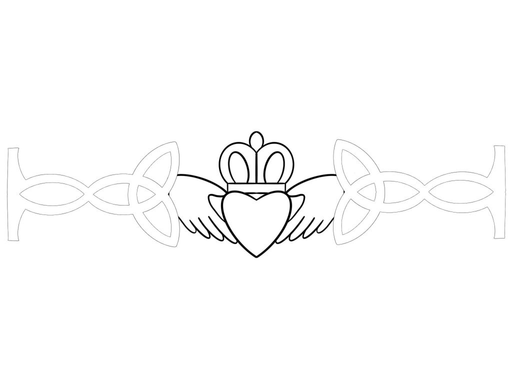 If you’re using scissors or a precision blade & mat, print your saved pattern on paper, sized at your desired length. Carefully cut out around the pattern and in the negative spaces. If you want to make it really simple or your kids want to color in the claddagh symbol, just cut around the pattern.