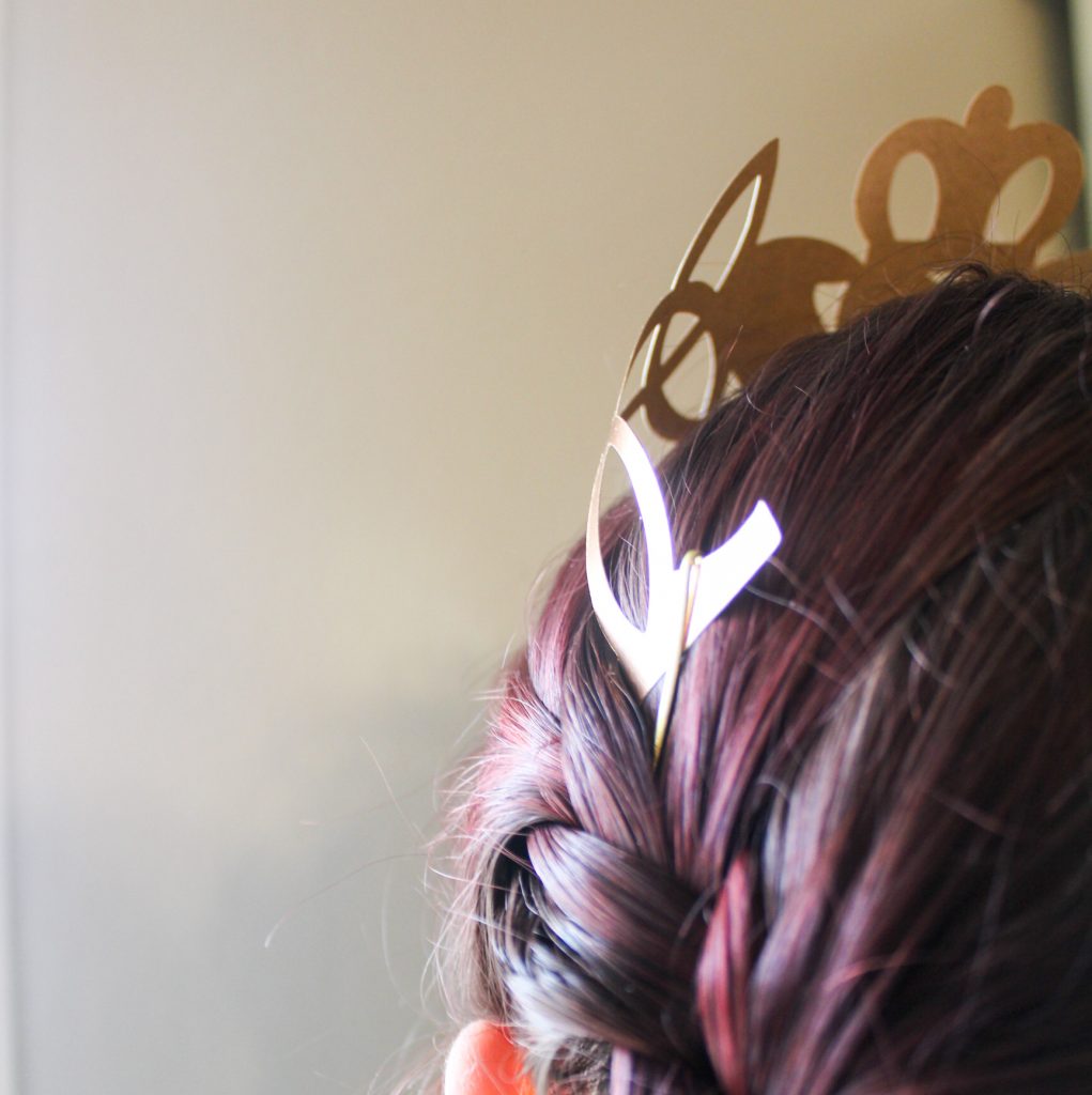 Another way to secure the crown on your head is by simply using bobby pins! Just slide them over the paper and into your hair.