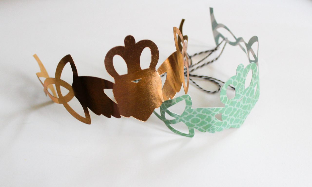 If you’re using a Cricut, upload your saved pattern to Design Space. Delete all of the negative space and size to fit your paper. I cut mine 11 inches long. Load your paper and blade and set your Cricut to cut whatever type of paper you’re using. Once cut out, carefully weed around the crown and pull it off of your mat.