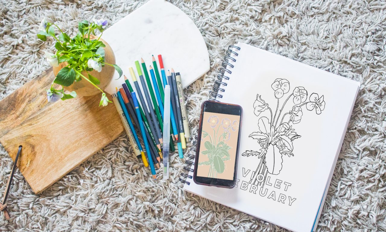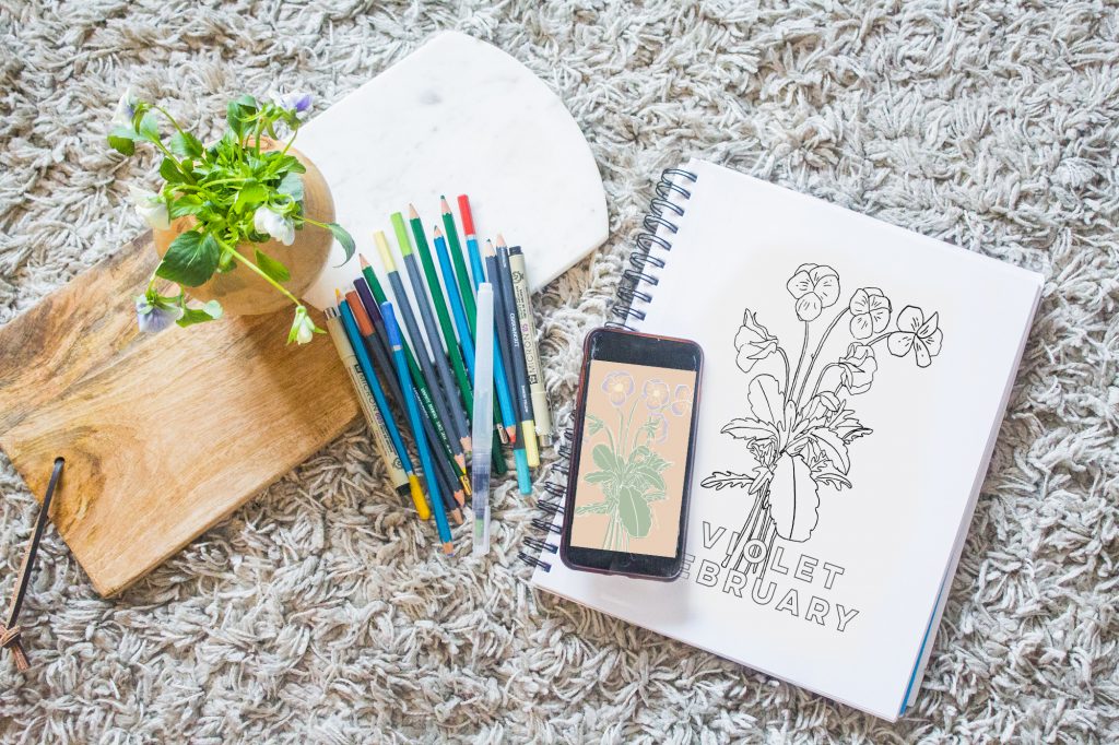 Here is this months free backdrops! Use these for your phone, Instagram rep (hey you February birthdays), and add this to your desktop. Grab these free February Violet Birth Flower Background & Coloring Page now.