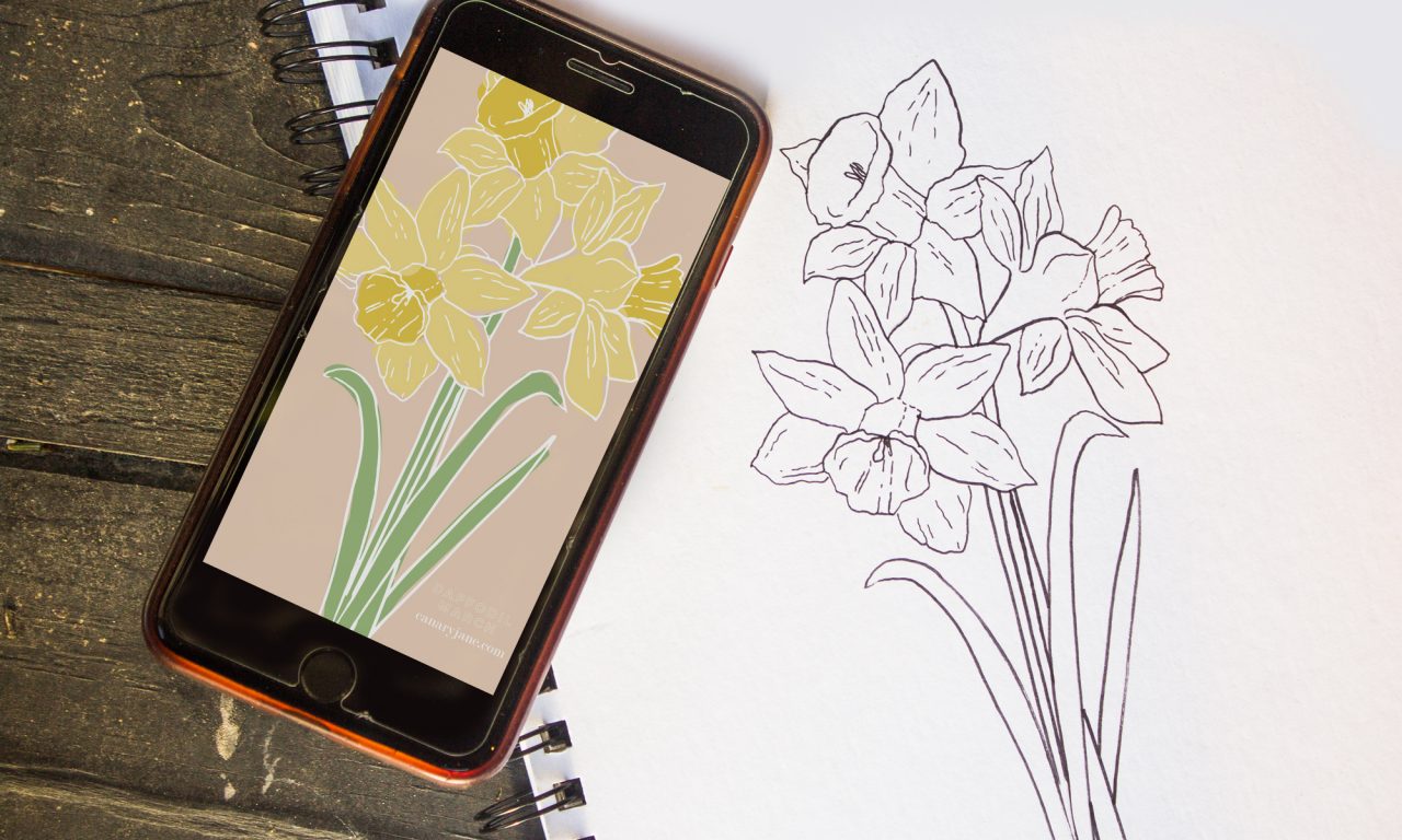 I’ve got the March free background ready for you! Grab these for your phone, March birth post and add this to your desktop. Grab these free March Daffodil Birth Flower Background & Coloring Page now.