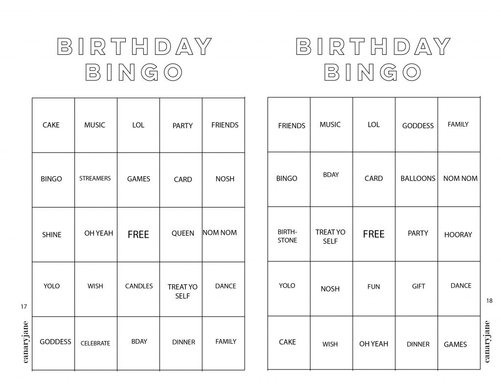 Print these free bingo cards for your birthday! There are 20 different cards with fun birthday related words on them. You can have friends celebrate your birthday with you by playing Bingo! If you want to have fun, you can do multiple bingos on one card.