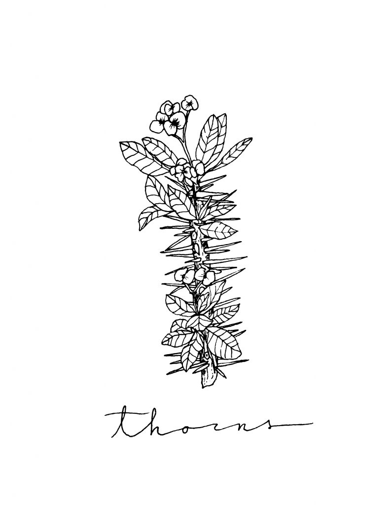 Thorns are spoken in the scriptures in Mark 4 in the parable in sower. But more known is that crown of thorns placed on Jesus head during his crucifixion in John 19:2.
