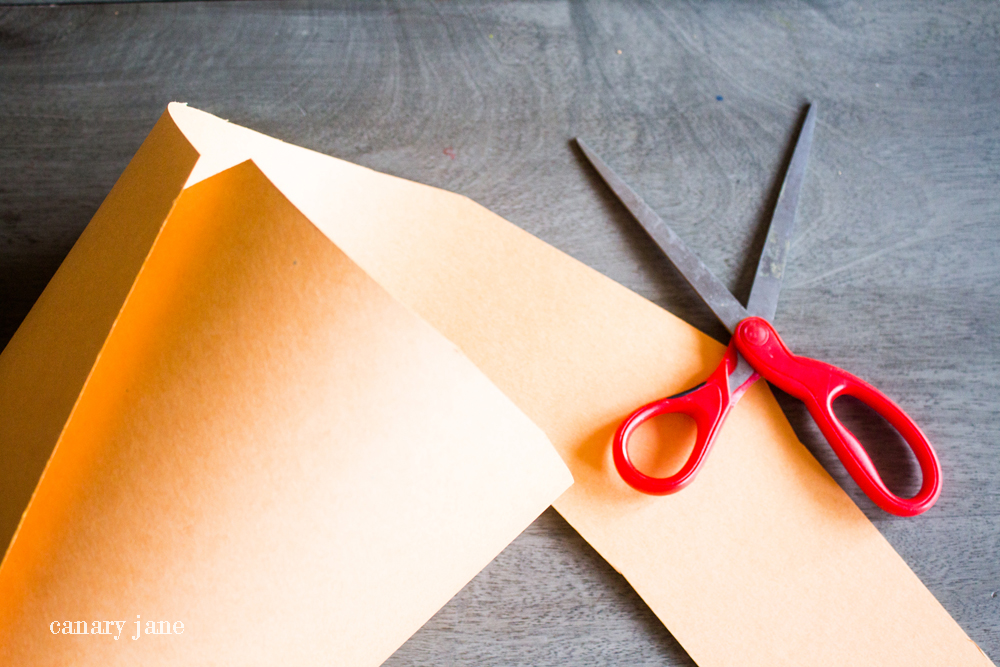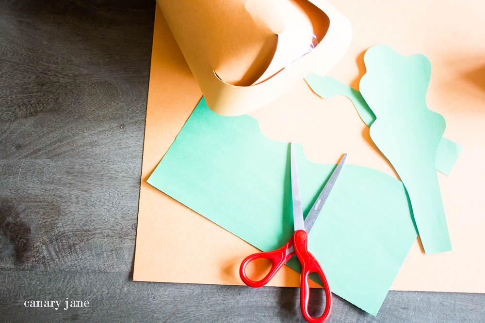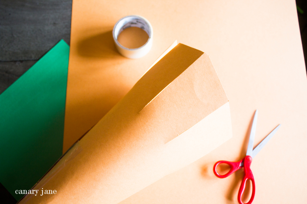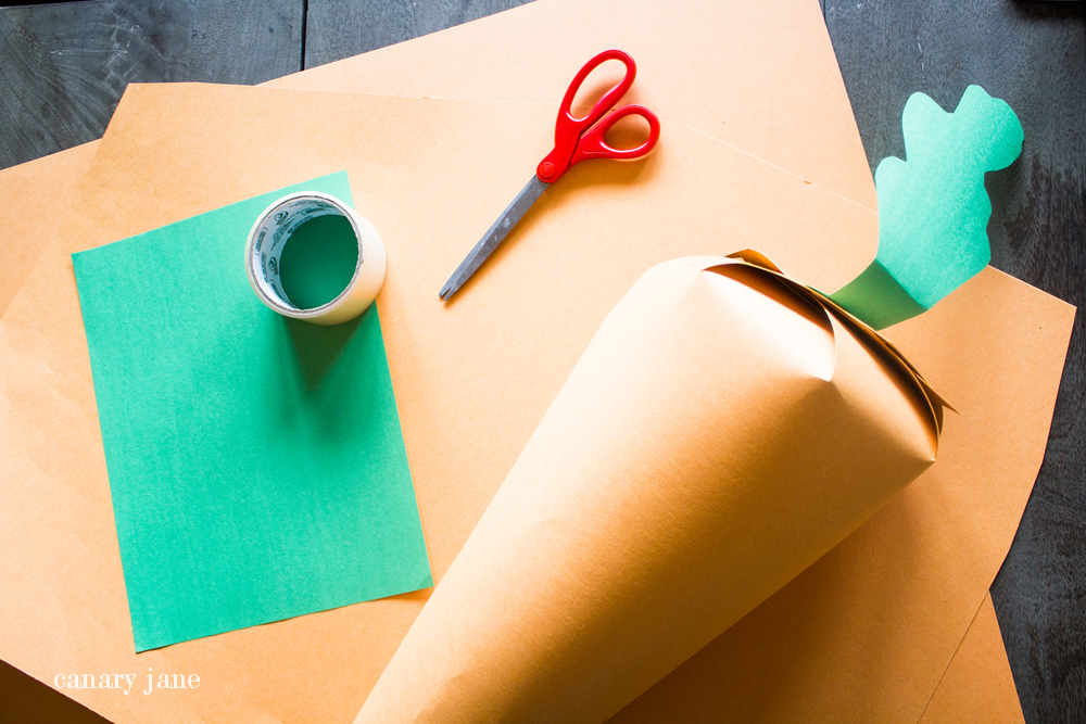 1. Trim the orange posterboard so as you roll it long ways in the middle the top will taper up. It also helps if you round the top of the carrot as well.