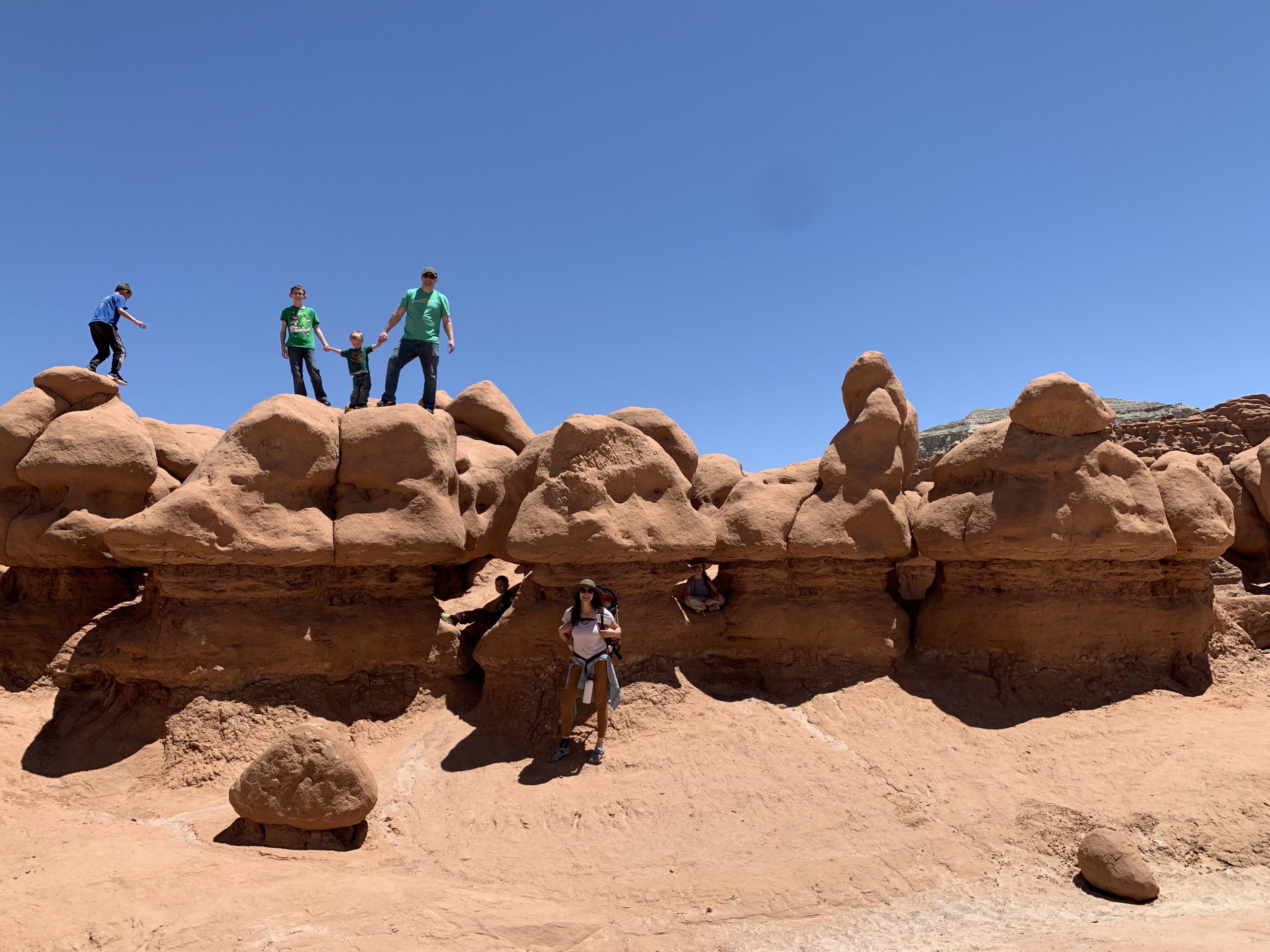 We brought our six kids with us to Goblin Valley and they did great. There are no stroller trails so plan accordingly. But you may be able to get away with a utility trailer. For our infant we brought a hiking backpack like this one. Our two year old walked most of the areas and we carried him as well. Our older children loved climbing hoodoos and exploring.