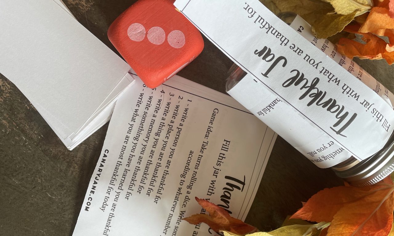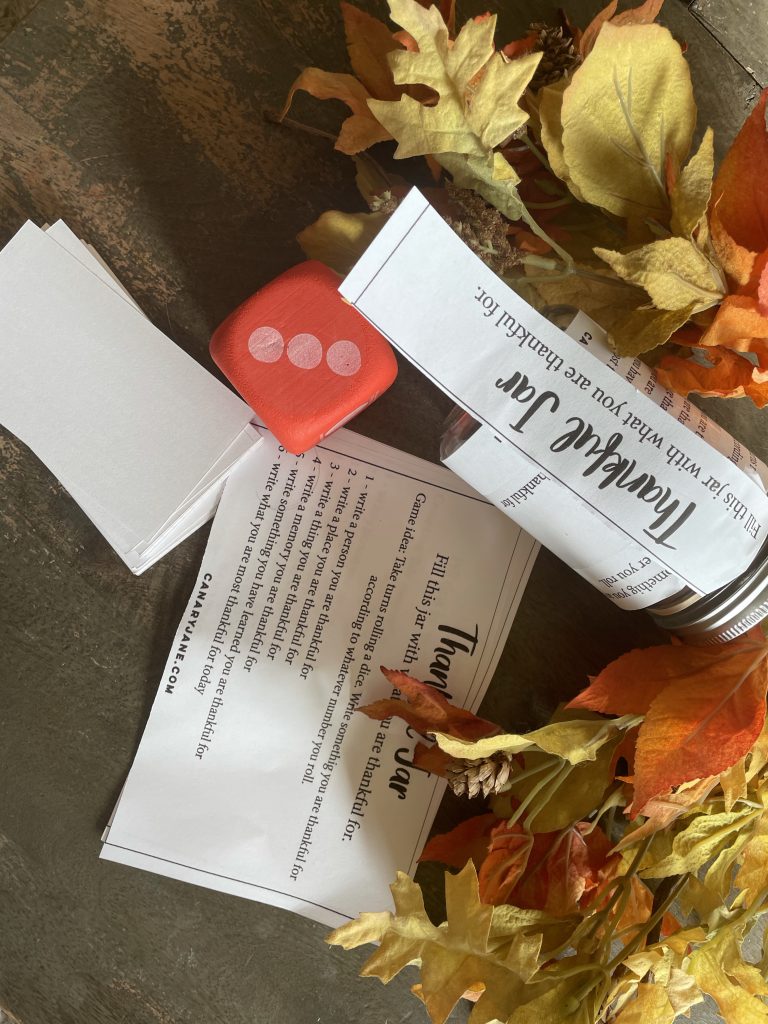 I found some gratitude games on Pinterest that inspired me to create this Thankful jar gratitude game. Use this simple game using dice and my printable guide to play at family night or Thanksgiving.