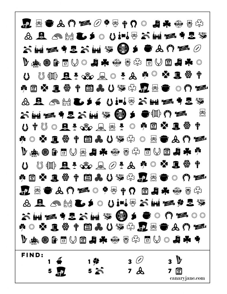 One of the free printables is an Irish themed scavenger hunt where you have to find a certain amount of icons. The second is a fun hunt to count the shamrocks around your home.