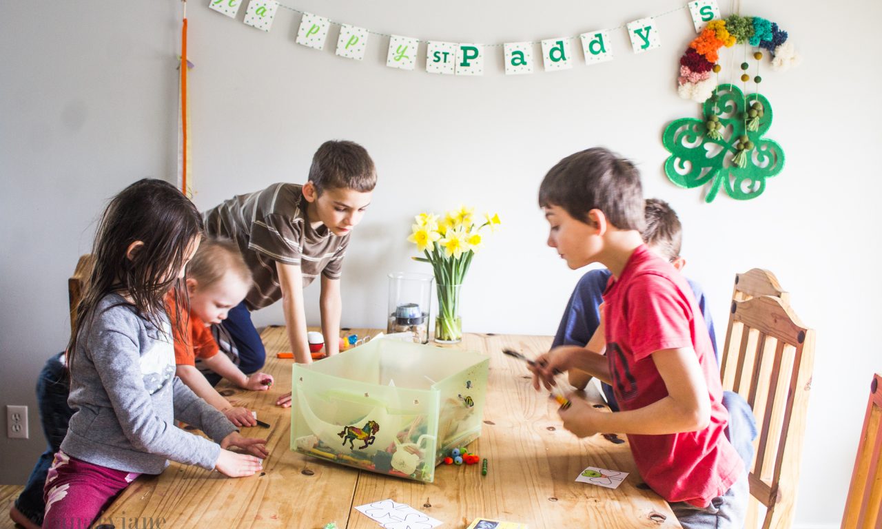 Tomorrow is St Patricks Day. And if you’re looking for some fun printables that don’t require you to go to the store, I’ve got some for you. Along with my leprechaun hunt here and Irish Poem activity here I have two different free printable St Patricks Day activities for you today. These are perfect for being inside during the Corona Virus quarantine! I also made this rainbow balloon garland so kids in the neighborhood can get stickers when they come to our house.