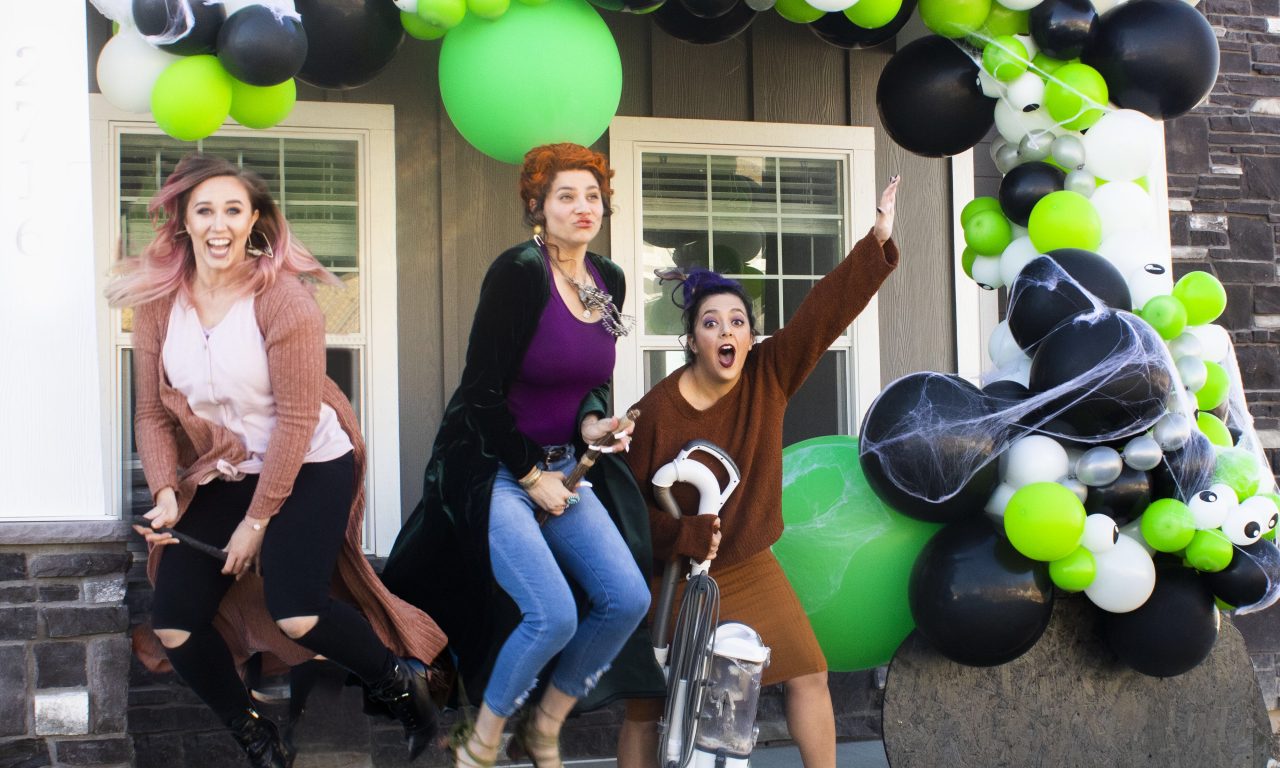 To finish off our looks we grabbed a couple classic Hocus Pocus Props like a Binx cat, brooms, a boom, and of course a vacuum. Check it out.
