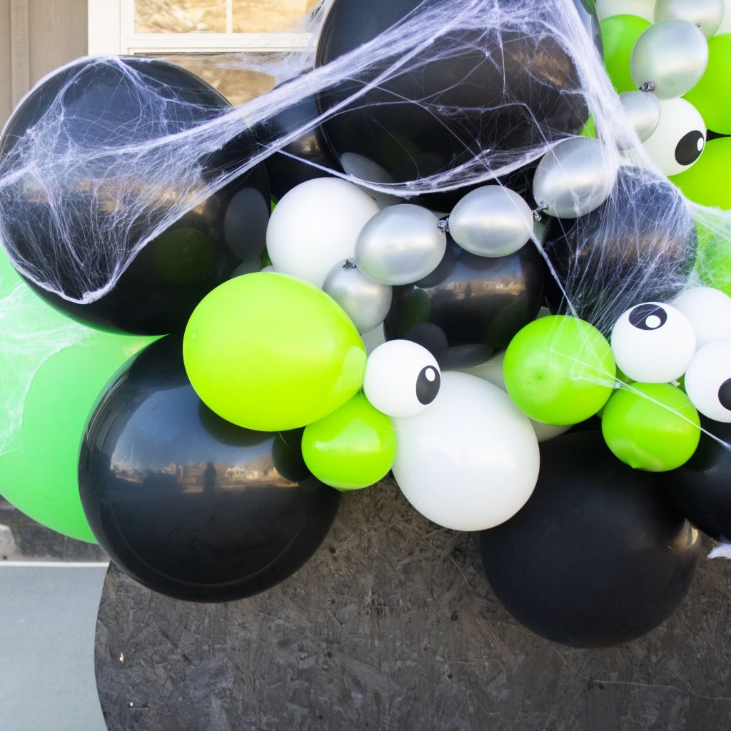 My BFF, Steffanie made this amazing witches brew garland as the perfect creative Halloween porch decoration. Isn’t it amazing?! She used different sized balloons to make the brew coming out of the pot. And she cut some plywood and painted it black for the cauldron. Not sure how to make a balloon garland? Check out this post.