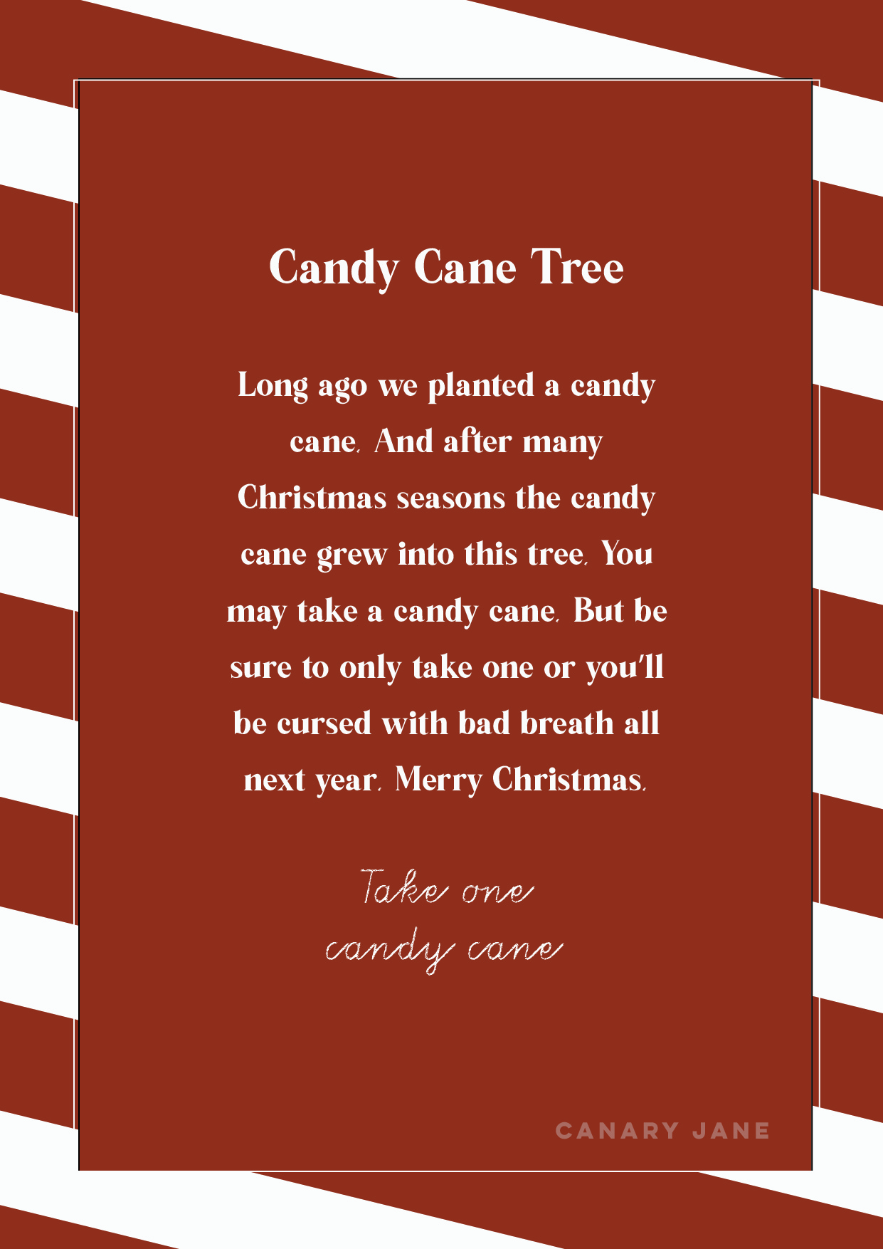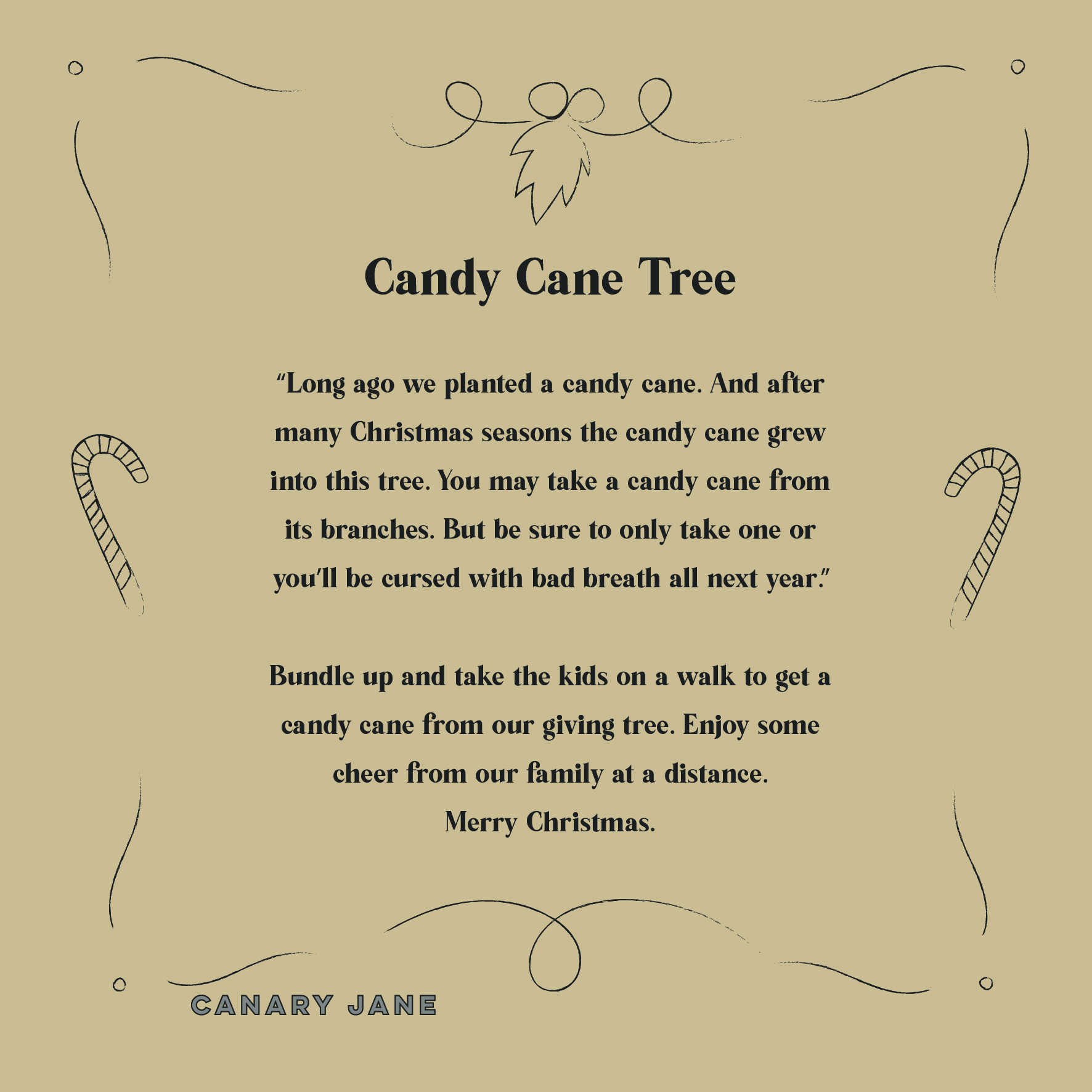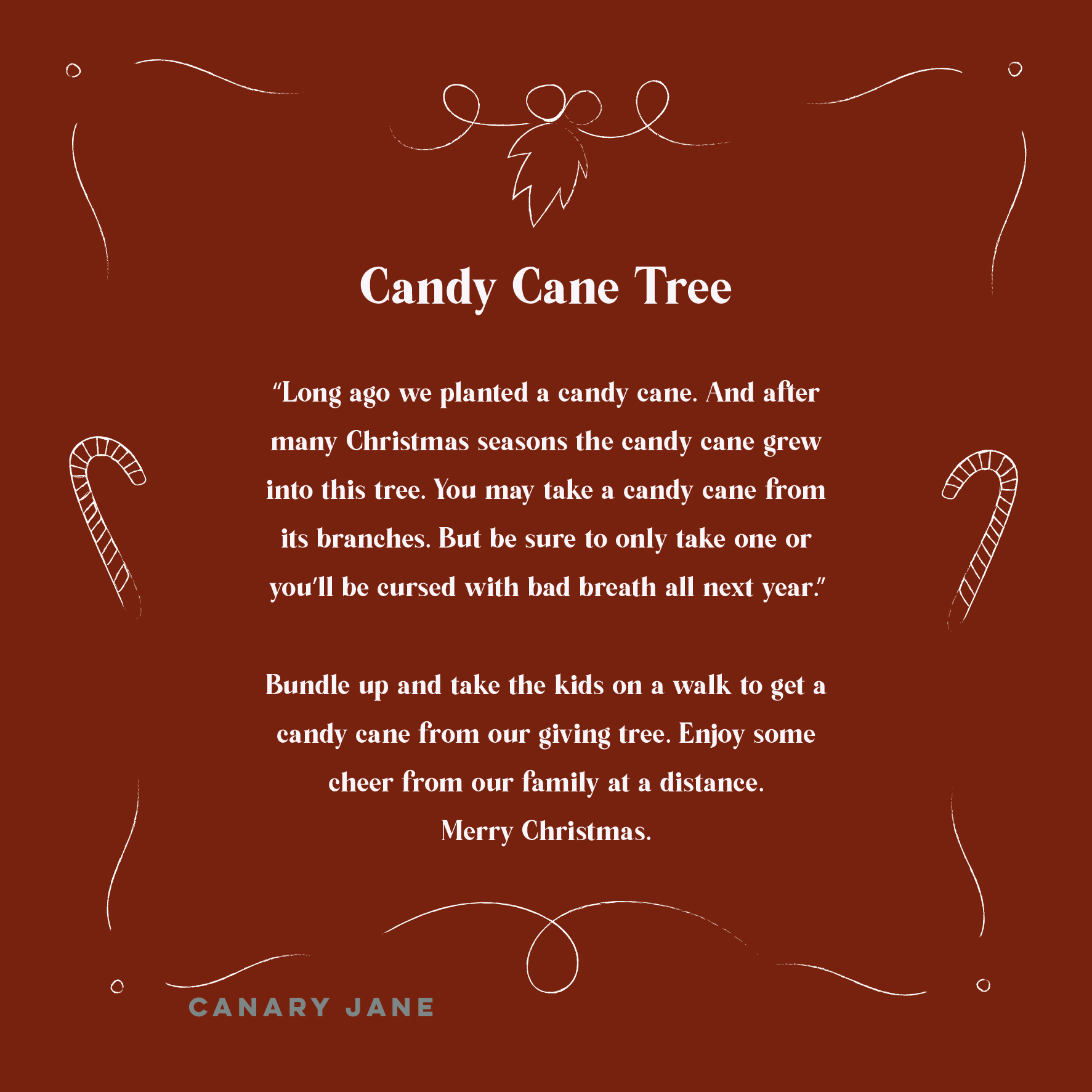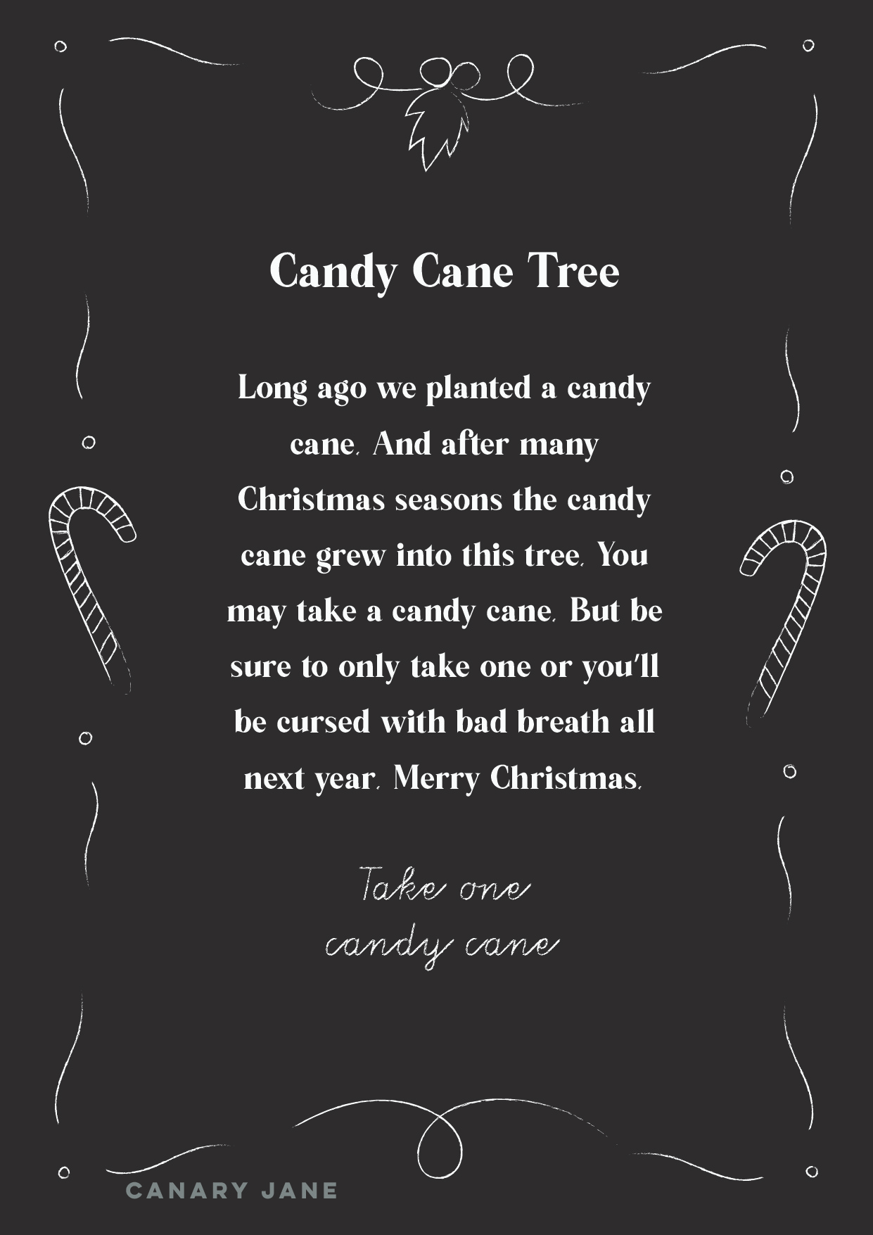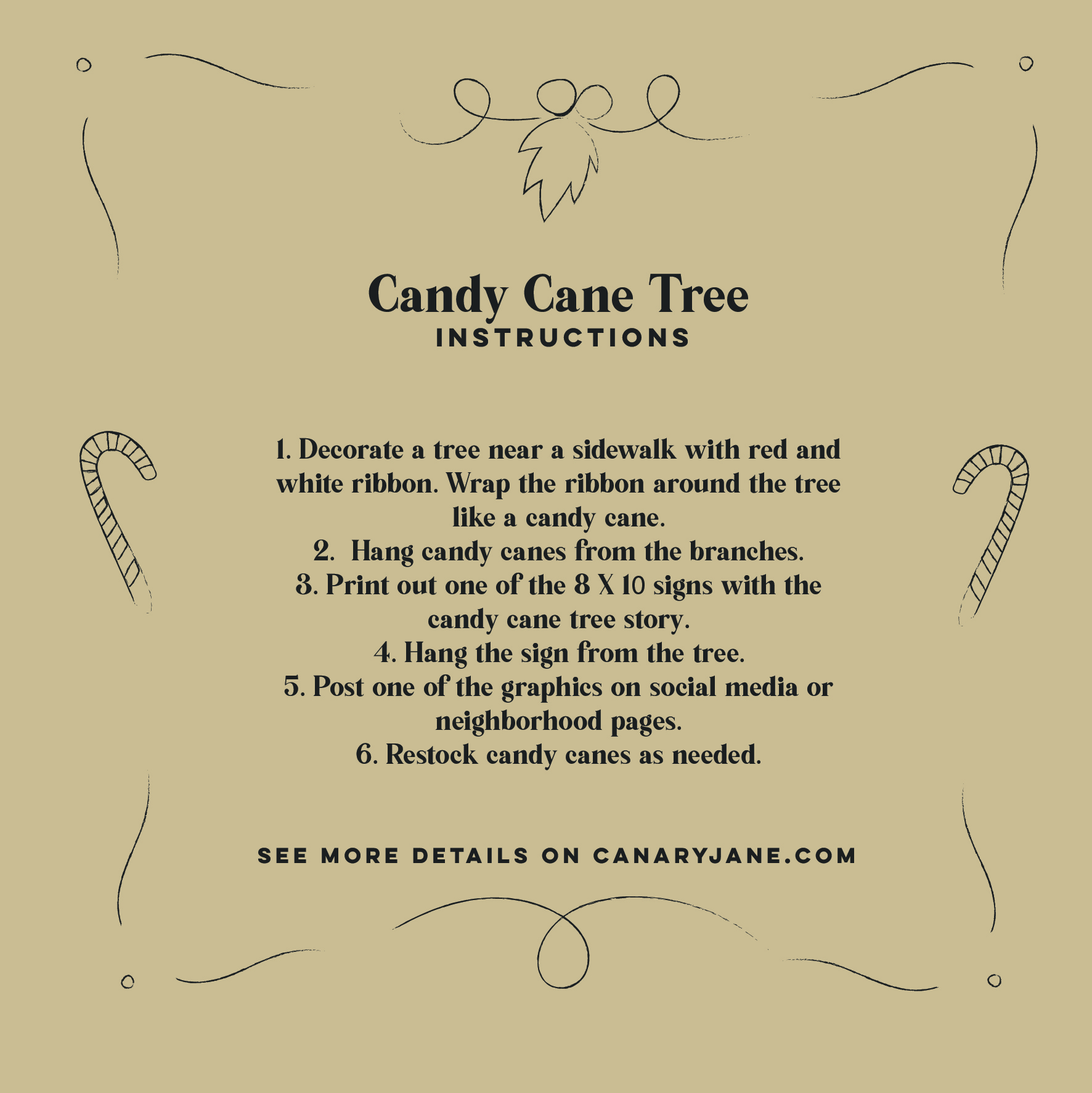 I originally got this idea from a neighbor in our last neighborhood. So with Covid and not being able to do Christmas parties I remembered this idea. It is kind of the best idea with Covid or not because it’s inexpensive and doesn’t take a lot of time to out it together. And the best part is it brings the community together and adds to the holiday season. Print of the 8 by 10 sign to hang and then download and use the graphics to share on social media and let your neighborhood know about your candy cane tree.