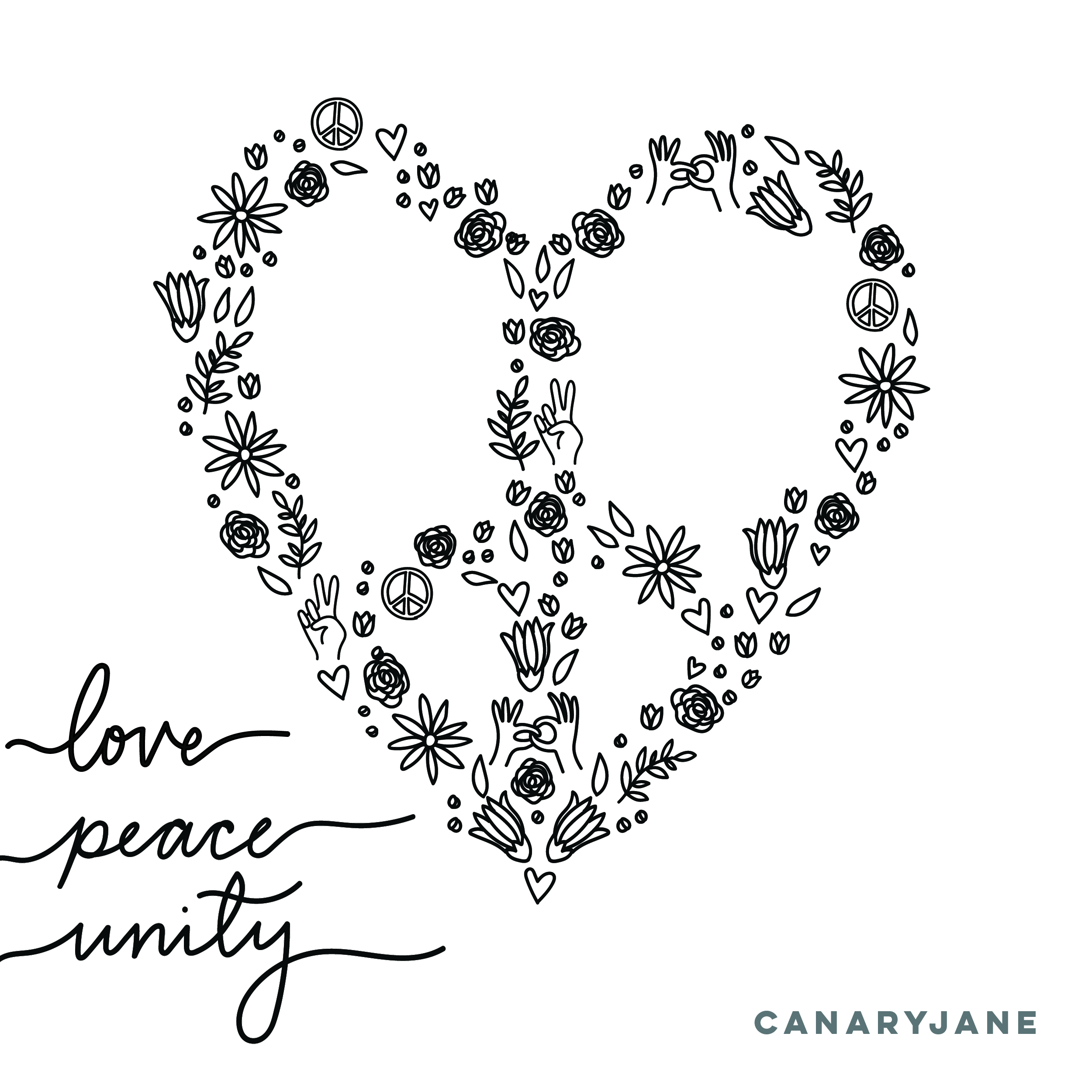 Print these coloring pages that promote peace, love, and unity.